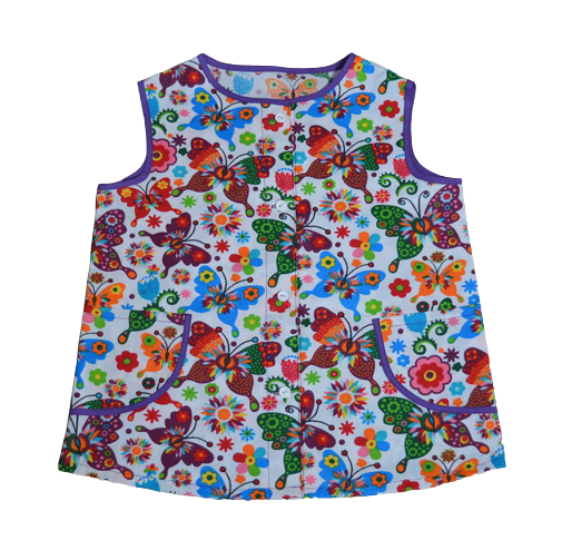 Klasická bavlněná zástěrka nejen do školky. Zapínání na čtyři knoflíky. Dvě kapsičky, které uschovají kapesníček nebo menší drobnosti.