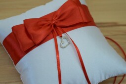 Bílo - červený polštářek pod snubní prstýnky