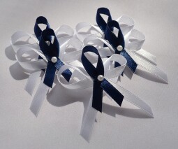 Svatební vývazek pro svatebčany. Ručně šitý, uprostřed bílá plastová perlička.