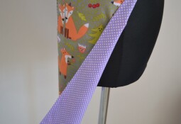 Klasická dámská bavlněná zástěra na zavazování za krkem a kolem pasu. Zástěra má podšívku ve fialkové barvě s bílým puntíkem. Díky podšívce je zástěra pevnější a nejsou nikde vidět švy.