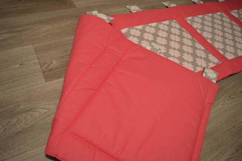 Velký kapsář na zeď do dětského pokoje. Kapsář je vyroben z kvalitní na omak jemné bavlny, je podšitý 200g vatelínem, který je všitý do švů a nehrne se kam nemá. Má pět prostorných kapes. Slouží jako dekorace, ale zároveň také izoluje od chladné zdi.