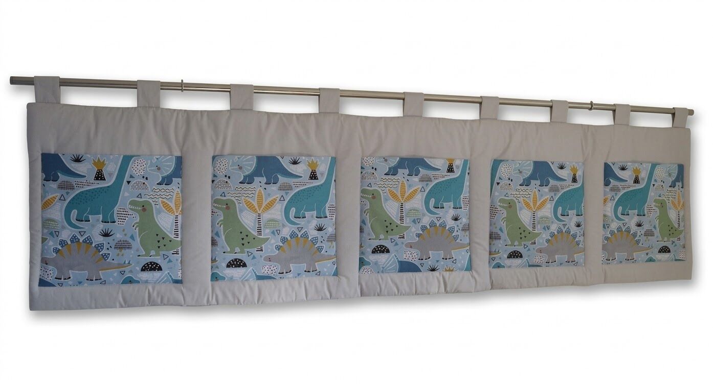 Velký kapsář na zeď do dětského pokoje. Kapsář je vyroben z kvalitní na omak jemné bavlny, je podšitý 200 g vatelínem, který je všitý do švů a nehrne se kam nemá. Má pět prostorných kapes. Slouží jako dekorace, ale zároveň také izoluje od chladné zdi.