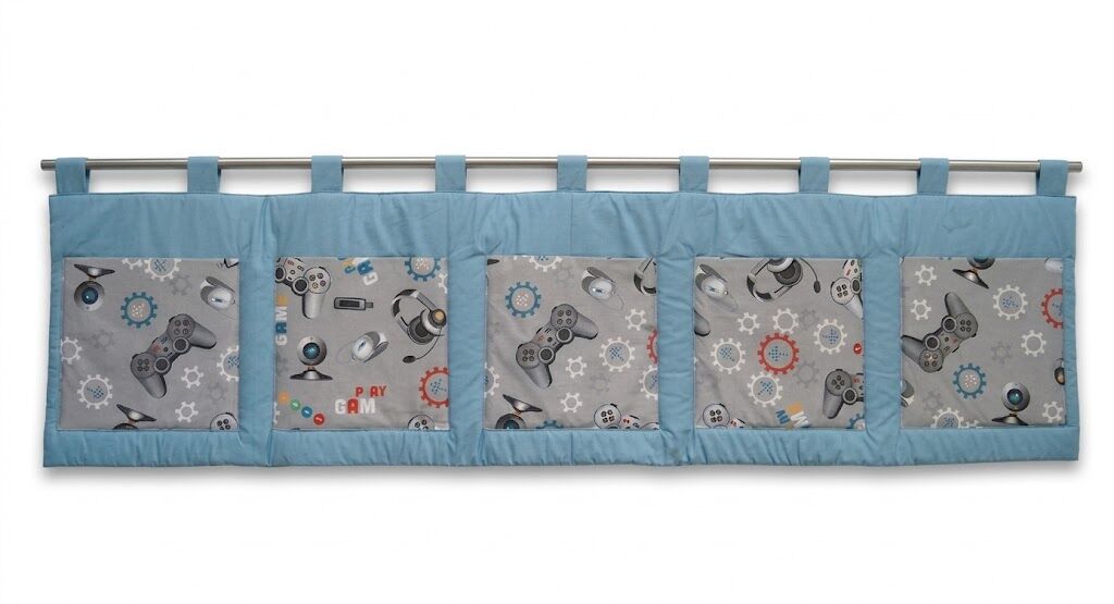 Velký kapsář na zeď do dětského pokoje. Kapsář je vyroben z kvalitní na omak jemné bavlny, je podšitý 200 g vatelínem, který je všitý do švů a nehrne se kam nemá. Má pět prostorných kapes. Slouží jako dekorace, ale zároveň také izoluje od chladné zdi.