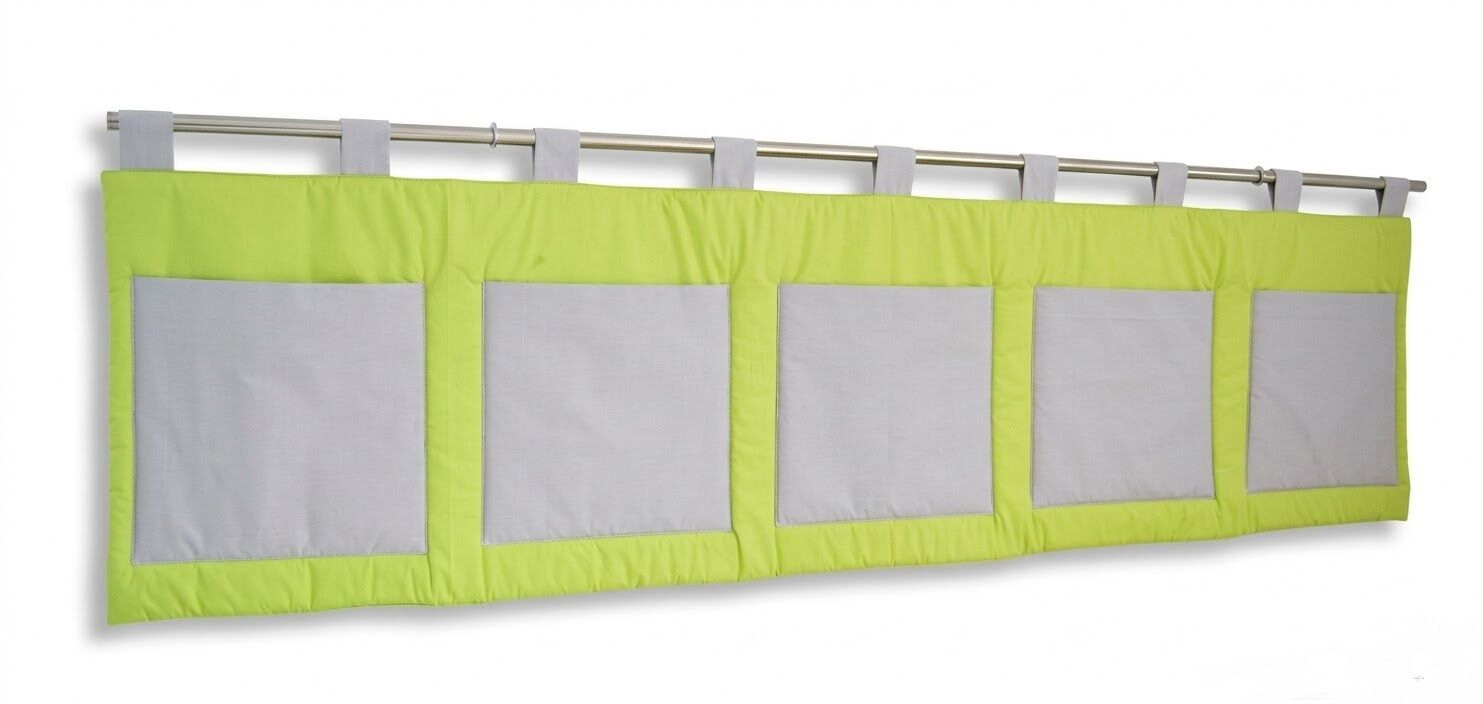 Velký kapsář na zeď 200x50 cm zelená, šedé kapsy a poutka