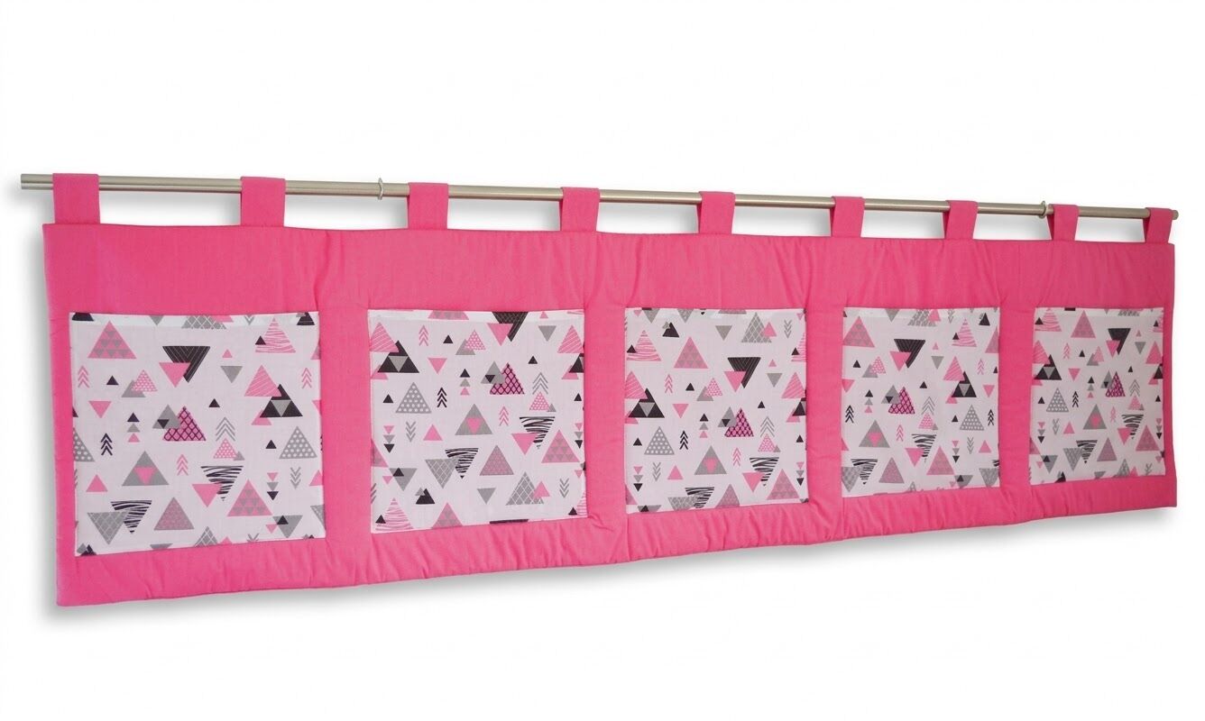 Velký kapsář za postel 200 x 50 cm růžová trojúhelníky